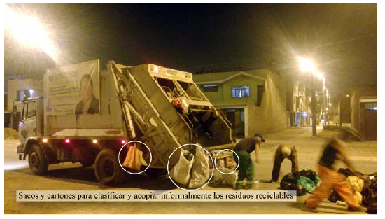 Las prácticas ilegales de los empleados de empresas prestadoras del servicio de recolección de desechos, constituyen una fuente de competencia desleal que no desapareció con la aplicación de la Ley del 2009. Estos empleados recuperan los residuos reciclables durante el recojo de las bolsas de desechos (ver figura 6) lo cual está prohibido, pero sancionar a estas empresas es difícil porque son prácticas de sus empleados y frecuentemente faltan pruebas. Regularizar las actividades de los centros de acopio y formalizarlos, puede permitir un control del origen de los residuos que compren y así impedir que estos residuos recuperados de forma ilegal encuentren un comprador. El modelo implementado en Comas trabaja con los centros de acopio, pero no controla el origen de residuos comprados.