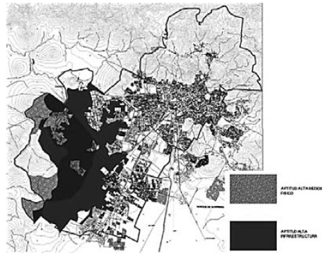 Así, según el PMDU5 se definieron como áreas viables para el crecimiento urbano —y con ello tendencias de crecimiento a consolidar— aquellas que se presentan hacia el poniente del municipio y al surponiente; también otras que limitan hacia el norte, por tener pendientes pronunciadas, y algunas hacia el suroriente, por los usos agrícolas en suelos fértiles (figura 6).