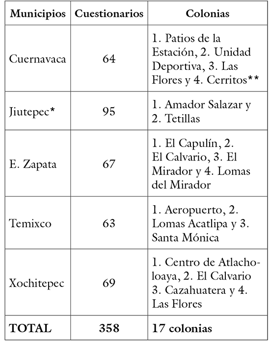 *Municipio no perteneciente a la Zona Metropolitana de Cuernavaca.