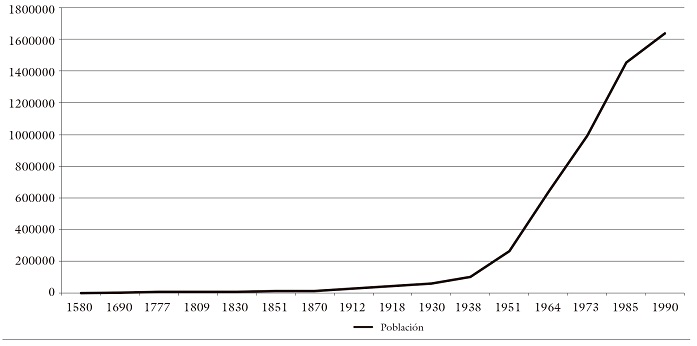 Desde el análisis descriptivo, el desarrollo de la ciudad de Cali muestra una tendencia que va muy ligada a su crecimiento tanto poblacional como territorial, cuyo punto de partida se hace más pronunciado iniciando el siglo xx (ver figura 2).