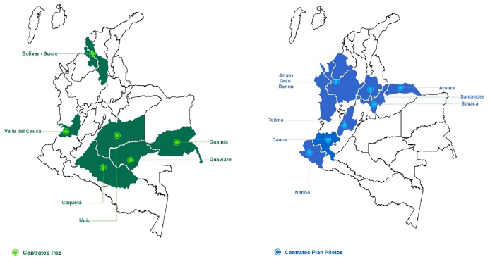 Con base en este mecanismo, el segundo gobierno Santos implementó dentro del PND 2014-20184una segunda generación adaptada a las zonas más expuestas del posconflicto, los contratos paz. Los seis nuevos contratos paz (figura 1) incluían recursos por 6,5 billones de pesos.