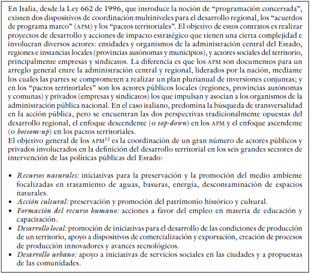 Para ilustrar estos dos primeros aportes, podemos mencionar dos ejemplos italianos de contractualización territorial en clave regional (tabla 1).