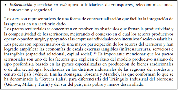 Naturalmente la complejidad del manejo del desarrollo territorial excluye cualquier tipo de receta metodológica unívoca, en particular para el último obstáculo mencionado. Sin embargo, siguiendo el curso del análisis efectuado a partir de las experiencias extranjeras que hemos comentado, se puede responder a la pregunta ¿por qué concertar por contrato el desarrollo territorial? con la siguiente respuesta matizada: