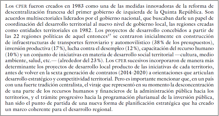 El ejemplo más completo de territorialización de la planificación del desarrollo por medio de la contractualización es seguramente el del referente francés de los contratos plan colombianos, los contrats de plan Etat région (tabla 3).