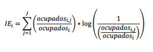 Otro indicador utilizado para medir la dispersión es el Coeficiente de Entropía ( IE j ), donde valores mayores corresponden a regiones más diversificadas.