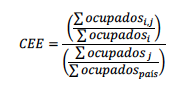 Para medir la especialización en las Ciudades de más de 5000 habitantes se definió y calculó el Coeficiente de Especialización productiva aproximado por Empleo (CEE), por sector de actividad económica ( Rodríguez Miranda, 2013):