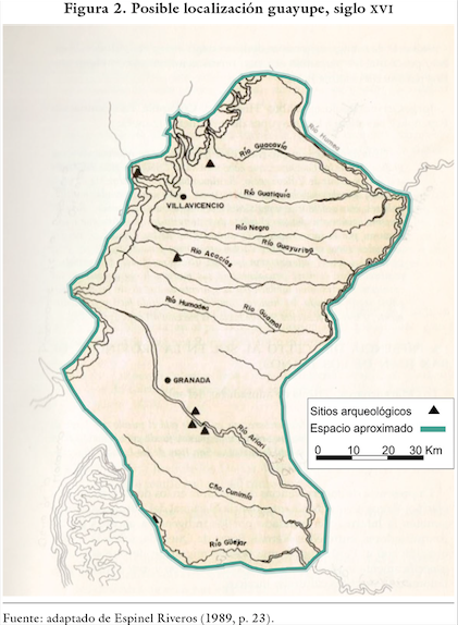 Según los documentos históricos existentes sobre la ciudad de Villavicencio, que hablan de su etapa prehispánica embrionaria, se puede decir que este espacio de piedemonte, junto con vastas zonas llaneras —antes de la colonia española— era un territorio, porque era un espacio geográfico habitado, vivido, trabajado y luchado por poblaciones guayupe, comunidades establecidas con ciertos órdenes sociales y grupos bélicos de difícil reducción para los españoles ( Franco, 2017), quienes, a diferencia de la actual subutilización agrícola del suelo, tenían sofisticados sistemas que hacían más productiva la tierra ( Gómez López & Cavalier de Ferrero, 1998).