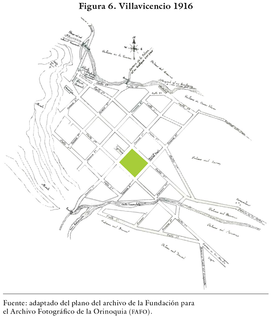 Si bien los esfuerzos por reconstruir la historia urbana de Villavicencio parten de su origen formal con la refundación en la época republicana, es posible reconocer que esta tiene orígenes anteriores como territorio de intercambio comercial entre los indígenas habitantes de la región este del piedemonte de la cordillera oriental colombiana y las comunidades muiscas del centro de Colombia. Este hecho territorial marca la pauta del presente artículo, que busca explicar las condiciones particulares de una ciudad que es un cruce de senderos llaneros que conectan con el mundo, cuya compleja historia no ha terminado de consolidarse. Con posteridad a este proceso ancestral, en 1845, según Salamanca Uribe (2009), se realiza una fundación oficial en lo que teóricamente se reconoce como un espacio concebido ( Lefebvre, 2013) que modifica las formas espontáneas de su nacimiento por los de una cuadrícula que ordena los terrenos a la usanza de la Colonia española. Todo esto permite afirmar, siguiendo a Aprile Gniset (1992), que Villavicencio, como la mayoría de las ciudades latinoamericanas, no nace exclusivamente del capitalismo, sino del feudalismo medieval. Como otras poblaciones del país, la ciudad crece a partir de un impulso del sector primario exportador hacia el interior y el exterior de Colombia ( Aprile-Gniset, 1992), además por fenómenos de violencia, narcotráfico y extracción minera, que continúan hasta la actualidad.