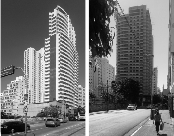 Un ejemplo emblemático de este proceso es la reciente inauguración —en el 2016— del nuevo Hotel Ca’D’Oro (figura 9), con dos torres de 32 pisos que en la esquina de las calles Augusta y Caio Prado, junto al parque Augusta, ocupa el terreno del hotel original, inaugurado en 1956 y demolido en el 2012. Más recientemente, la región se estableció por el aire bohemio nocturno, con jóvenes estudiantes de clase media y universitarios de toda la región metropolitana, que ocupan las calles y establecimientos diversos como bares, restaurantes, cafeterías y discotecas.