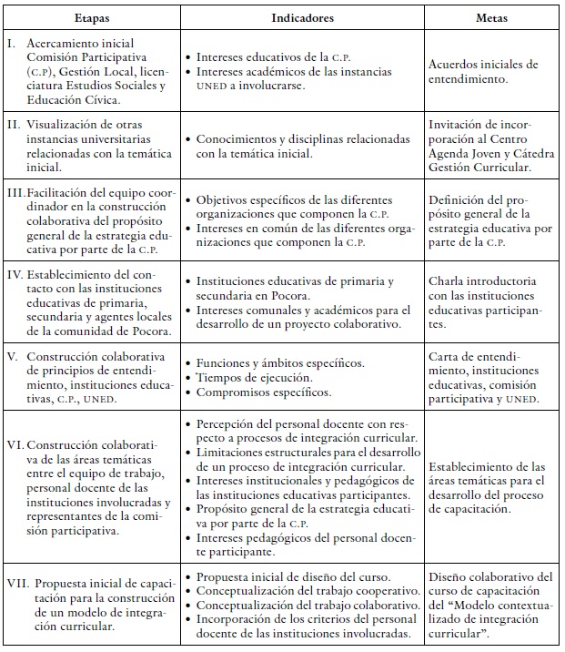 Una vez construido un objetivo común con los diversos sectores de la comunidad y las instituciones educativas, se procedió a la elaboración de la estrategia de enseñanza-aprendizaje por parte de las instancias de la uned que participan del proyecto.
