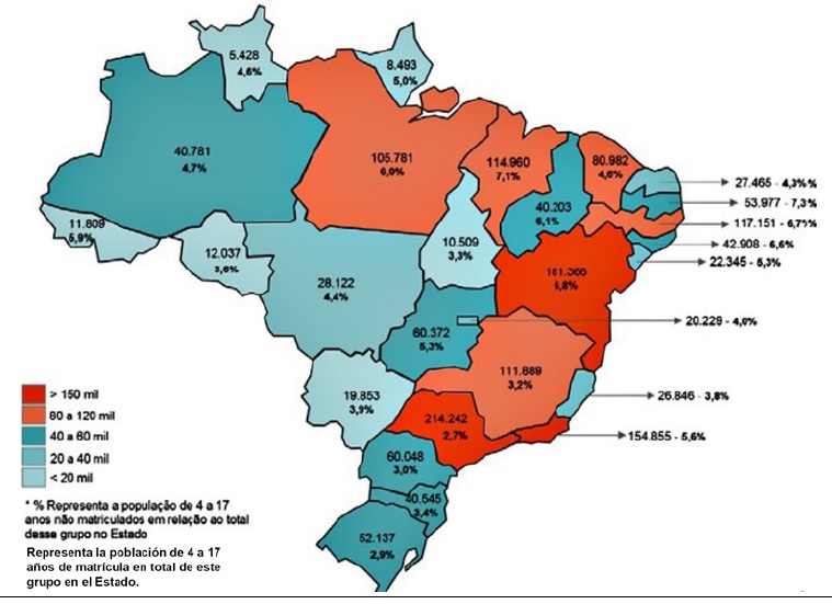 Según el Instituto Brasileño de Estadística y Geografía (ibge), Bahía tiene más de 1,5 millones de analfabetos, de los cuales 61 351 están en la ciudad de Salvador (ibge, 2013). Estas personas —de 15 años en adelante—, no saben leer ni escribir, lo que significa que no han tenido acceso, o no han concluido la formación básica. Según el Informe Juventud y Políticas Públicas en Salvador–Bahía (unfpa, 2013), 11 000 jóvenes analfabetos se encuentran en situación de vulnerabilidad, la cual se constituye también por la precariedad de la infraestructura de sus viviendas y la dificultad en cuanto al acceso de bienes y servicios públicos.