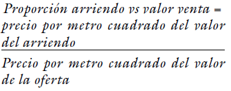 [4]En cuanto al segundo aspecto, la relación entre el valor de alquiler por metro cuadrado de los inmuebles y su precio comercial, se capturó información del mercado inmobiliario de plataformas comerciales de intermediación inmobiliaria con la técnica de web scraping, a través de la cual se obtuvieron 60.615 registros de inmuebles en oferta para venta y 23.404 registros de inmuebles en arrendamiento con atributos de localización, precios, área y tamaño. A partir de esta información, y dada la escasez de coincidencia en valores de venta y arrendamiento para el mismo inmueble, se implementó un esquema de emparejamiento por características similares entre los inmuebles en venta y arrendamiento, teniendo en cuenta los atributos de: sector catastral, tamaño,4 tipo de inmueble (casa o apto) y estrato. De acuerdo con esto, se plantea la relación entre el valor de alquiler por metro cuadrado y precio de venta por metro cuadrado entre los inmuebles emparejados, de la siguiente manera: