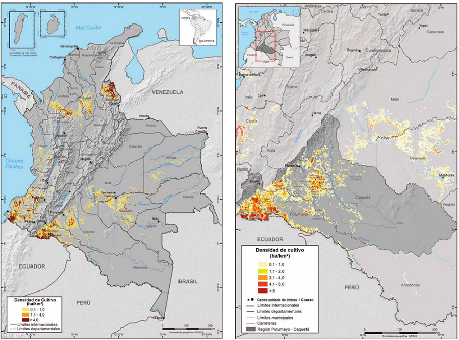Oficina de la Naciones Unidas contra la droga y el delito (UNODC). (2013). Atlas de la caracterización regional de la problemática asociada a las drogas ilícitas en el departamento del Putumayo. http://www.odc.gov.co/Por-tals/1/politica-regional/Docs/2016/REATLAS0637_putumayo.pdf