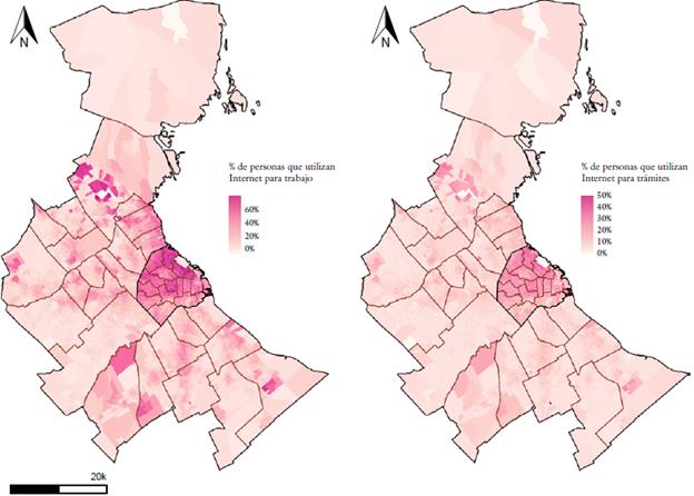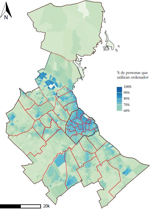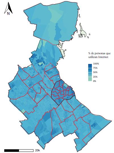 (iv) Es una construcción de y entre personas conectadas a redes de información, diseñadas para optimizar recursos. Se trata de una construcción de y entre personas conectadas que, efectivamente, pueden integrarse a y en una red de información. En este sentido, la conectividad no alude solo a una cuestión de acceso a la tecnología sino fundamentalmente de usos. Tal y como observamos en los acápites anteriores, en las ciudades como Buenos Aires, las desigualdades en el piso tecnológico se superponen con la disponibilidad de infraestructuras desiguales entre y en las jurisdicciones.