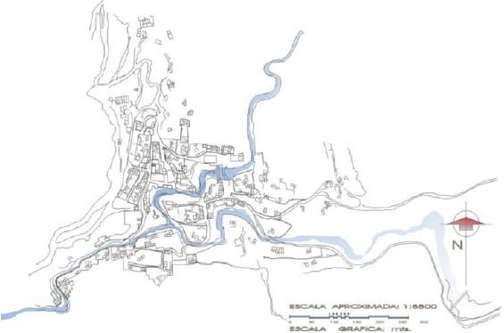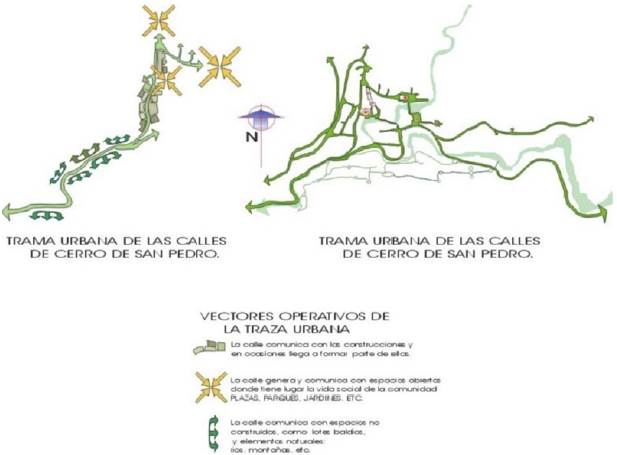 Los yacimientos del Cerro de San Pedro se enmarcan en la Sierra Madre Oriental. El yacimiento minero fue descubierto en 1592 (Montejano & Aguiñaga, 1980) y fue poblado en un esquema de gran complejidad por la multiplicidad étnica: indígenas, mestizos, negros, mulatos y españoles. El ordenamiento resultante de la interacción entre el grupo humano y el lugar (figura 3) intervino en la esquematización primaria que logró la configuración del asentamiento minero de Cerro de San Pedro (Arista Castillo, 2010).
