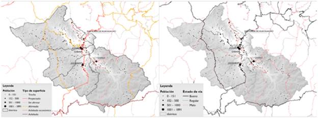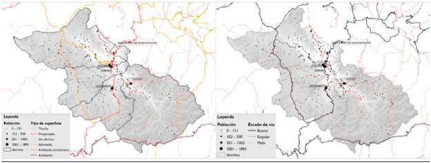 La red de caminos de la estructura territorial tiene varios componentes: la infraestructura vial vehicular, con sus tipos y estado de la vía (figura 9), los caminos rurales, predominantemente peatonales y las visuales útiles en los desplazamientos a pie, en el espacio vertical. En esta red existe coherencia en los trazados de caminos rurales peatonales, con prioridad en asegurar la accesibilidad a las actividades cotidianas (Ampuero, 2021).