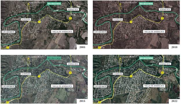 En una comparativa intradepartamental, se observa que las localidades de mayor crecimiento en el último decenio son aquellas que se encuentran por fuera del perímetro urbano de la cabecera municipal, en este caso Alta Gracia -de un crecimiento del 14,1 %-, pero vinculadas a la columna vertebral que se despliega entre esta y la RP5. Las localidades más próximas a la capital establecen relaciones físico-funcionales más intensas que el resto, como por ejemplo Anisacate, que exhibe un aumento de población del 67 %. A medida que el camino asciende y se pone más sinuoso esa dependencia se va desdibujando. Desde allí se configura una estructura urbana extensiva, dispersa y difusa que arranca en Anisacate y se extiende a lo largo de la RP5.