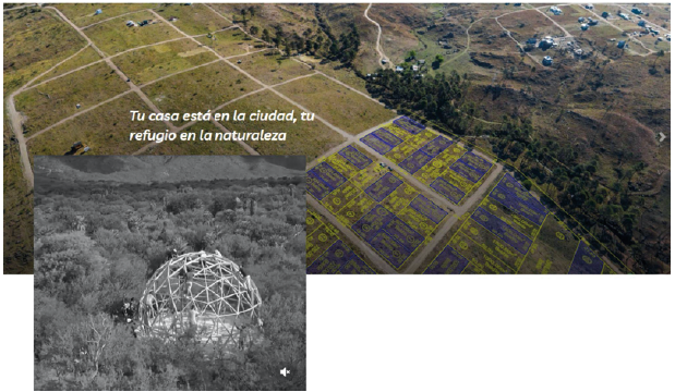 El sector inmobiliario utiliza la naturaleza como un plusvalor en el armado de proyectos urbanísticos que celebran la belleza, lo irrepetible del paisaje y su privilegio cultural (Carman, 2011). En otras palabras, la usa como un bien transable en el mercado, omitiendo la historicidad en la que se inscribe el territorio y sus habitantes (figura 5). Incluso, en algunos desarrollos, se apela al resguardo del ambiente ofrecido (loteo exclusivo en reserva natural protegida, chacras en reserva de monte nativo). En esta etapa de acumulación, dicho recurso evidencia el proceso de cooptación y cercamiento de los bienes comunes (Federici, 2020).