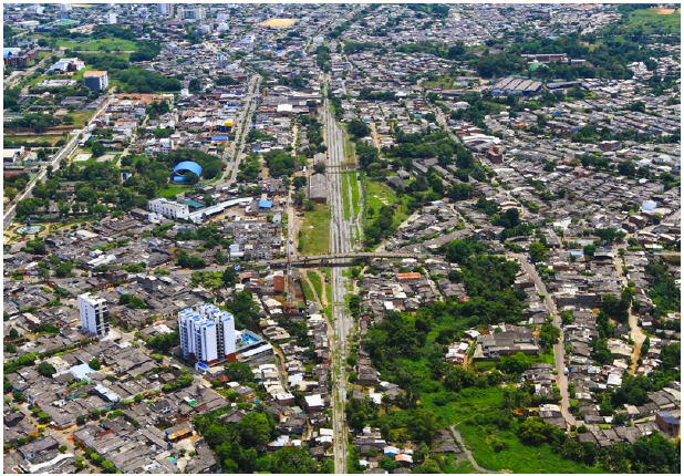 La dimensión espacial de estos cambios poblacionales es, por otra parte, significativa. Como vimos antes, en Colombia "la diáspora del desplazamiento ha generado el caldo de cultivo para el crecimiento de la ciudad informal en las periferias metropolitanas" (Burbano & Montenegro, 2017, p. 22). En el puerto petrolero, durante los años setenta y ochenta, las invasiones en la ciudad ya se concentraban en el oriente pasando las vías del ferrocarril que se consolidaron progresivamente como una barrera divisora entre la Barrancabermeja "formal" y la "informal". Se configuró, de este modo, una fragmentación territorial, que no solo significa una distribución desigual de los grupos en el espacio sino el establecimiento de cercos y obstáculos físicos (Segura, 2014).