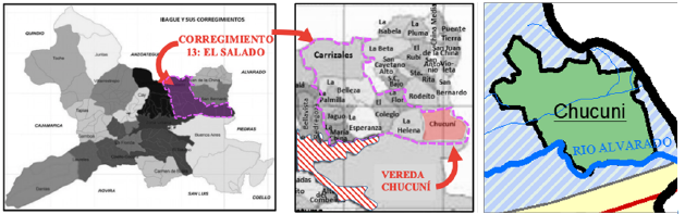 En relación con las áreas de protección, el Corregimiento El Salado presenta una baja proporción de hectáreas destinadas a la preservación de los ecosistemas. Eso implica que hoy, el corregimiento tiene un 59,56 % del uso del suelo apto para la producción agrícola y para la explotación ambiental mediante el turismo. La vereda Chucuní se localiza a 9 kilómetros del área urbana del municipio de Ibagué por la vía nacional Ibagué - Medellín (figura 2).