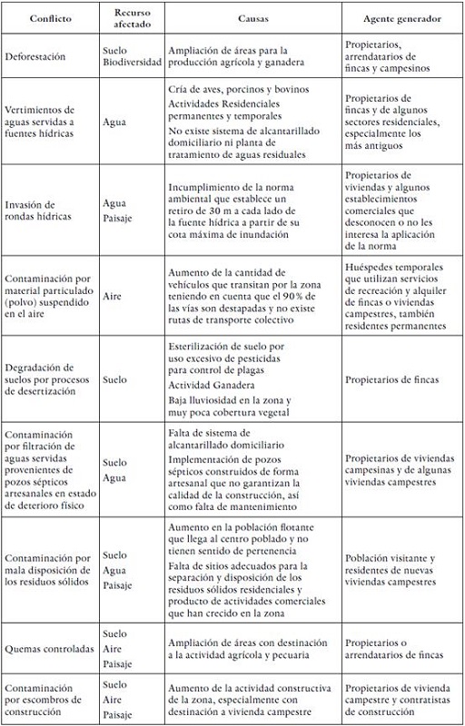 No obstante, en el marco de la sociología del conflicto es necesario reconocer que sus procesos y transformaciones se extienden en el tiempo, dependiendo de las percepciones sociales o de la aparición de nuevas causas y agentes generadores. Por ende, las tendencias de ocupación y usos del suelo seguirán generando nuevos conflictos o transformando los ya existentes.