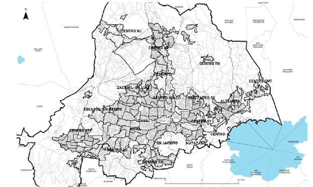 Se tienen como limitaciones en la información, la obtención de datos que representen mejor la situación de las impedancias en la red como volúmenes de tráfico de transporte y tiempos de espera y velocidades comerciales de las rutas del transporte público, la distribución y segmentación de la población del municipio en estudio, específicamente a lo que se refiere a distribución en el territorio de grupos de edad, condición socioeconómica y condiciones de discapacidad por cada sector mostrado en la figura 6.