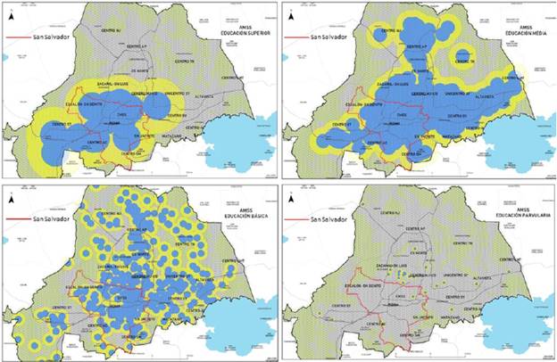 Este análisis además podría robustecerse y ser más realista si a futuro se incorporara el análisis de violencia y territorios dominados por grupos como las pandillas, sabido es que en El Salvador existen zonas y por lo tanto equipamientos básicos a los cuales el acceso a la población es impedido, López (2015, p. 262) afirma que las pandillas y maras pueden ejercer control sobre aspectos relacionales de los alumnos: la regulación sobre su origen geográfico, las relaciones de noviazgo, el reclutamiento, entre otros, también existe un fenómeno de atractividad del centro escolar, por ejemplo, por la cantidad de personas que preiere escuelas en otros municipios por desconfianza y baja calidad del sistema educativo nacional, estas complejidades no están reflejadas en estos modelos pero establecen horizontes en futuras investigaciones.