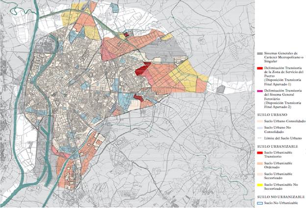 As normativas e resoluções oficiais não estabelecem uma ordem hierárquica entre essas diferentes modalidades de planejamento, contudo, as ações e consequências do planejamento estratégico impõem uma posição de subordinação das normas e instrumentos de ordenação urbana. Não obstante sua autonomia institucional, o PGOU se coloca em desvantagem porque opera em cenários previamente desenhados e impactados pela planificação estratégica orientada para a modernização da base econômica com largo impacto urbanístico. A despeito do eventual caráter sistêmico da relação entre essas referências de planejamento, as implicações do complexo de La Cartuja e do Plan Estratégico 2030 são exemplos paradigmáticos dessa relação de condicionamento em que se coloca o PGOU de Sevilla. Tal subordinação serviu como estímulo para uma intensa flexibilização das tipologias de solo, potencializando a delimitação de áreas urbanizáveis.