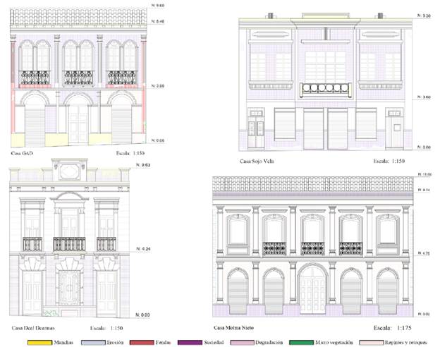 También se destaca que, a pesar de las afecciones identificadas en los materiales, se ratifican sus cualidades resistentes, aunque su valor artístico o histórico se vea afectado (Domingues et al., 2018), por lo que los estados y niveles de deterioro puede infravalorarse y, consecuentemente desatenderse, es decir, acciones de índole normativa y de planeamiento urbano son necesarios para superar la acción arquitectónica de carácter reparadora (Castillo et al, 2020), garantizar la conservación del valor intrínseco de la construcción (Valluzzi, 2007) e incluir su relación con el patrimonio inmaterial de relaciones sociales, hábitos, costumbres y tradiciones (Domingues et al., 2018) características del CHC y sus edificios.