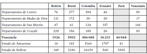 Conforme con lo definido en la tabla 1, no solamente se evidencia el gran número de migrantes en cada uno de los países que hacen parte de la región amazónica, sino también representa la clara presencia sostenida e importante en la tendencia de intercambio fronterizo entre los países mencionados.