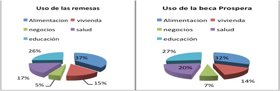 As remittances, although a greater extent, the resources of the Prospera scholarship are spent on direct consumption, or for upkeeping the home. However, it is important to differentiate their uses in household expenditures and uses in education of the young.
