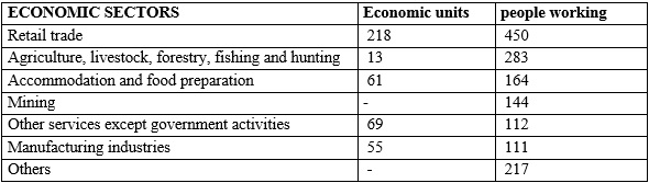Source: Prepared with data from INEGI, 2011Choix’s population is mainly engaged in retail, with about 218 economic units. It employs about 283 people in the field of agriculture, fishing, hunting and forestry. As for agriculture, this area is important for the survival of families from Choix, crop type is mainly seasonal, since soil conditions do not allow an irrigation system. Major crops in the municipality are grass, sorghum, maize, beans, watermelon, sesame and groundnut (Valdez, 2013).