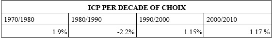 Source: prepared by the authors based on ICP data and formula (Lizárraga, 2010).This table shows the development of the ICP for every ten years. It can be observed that from 1970 to 1980 the result is positive at 1.9%, in the next decade the numbers were negative with -2.2%, and between the last two decades the percentage of this indicator has remained between 1.15 and 1.17%. In all these decades the results are below the state (1.8) and the national (1.7) average (Lizárraga, 2010). This means that Choix has a loss in its population, which can be attributed to the phenomenon of migration.