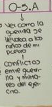 A partir de las representaciones gráficas usadas en las narraciones colectivas, se encontró que un 32% de las carteleras evocan algún objeto alusivo al uso de armas, entre las que destacan los machetes, cuchillos y pistolas. Estas representaciones no se encuentran ligadas a alguna etapa del desarrollo en particular, y pueden ser utilizadas por familiares viéndose expuestos de diversas formas.