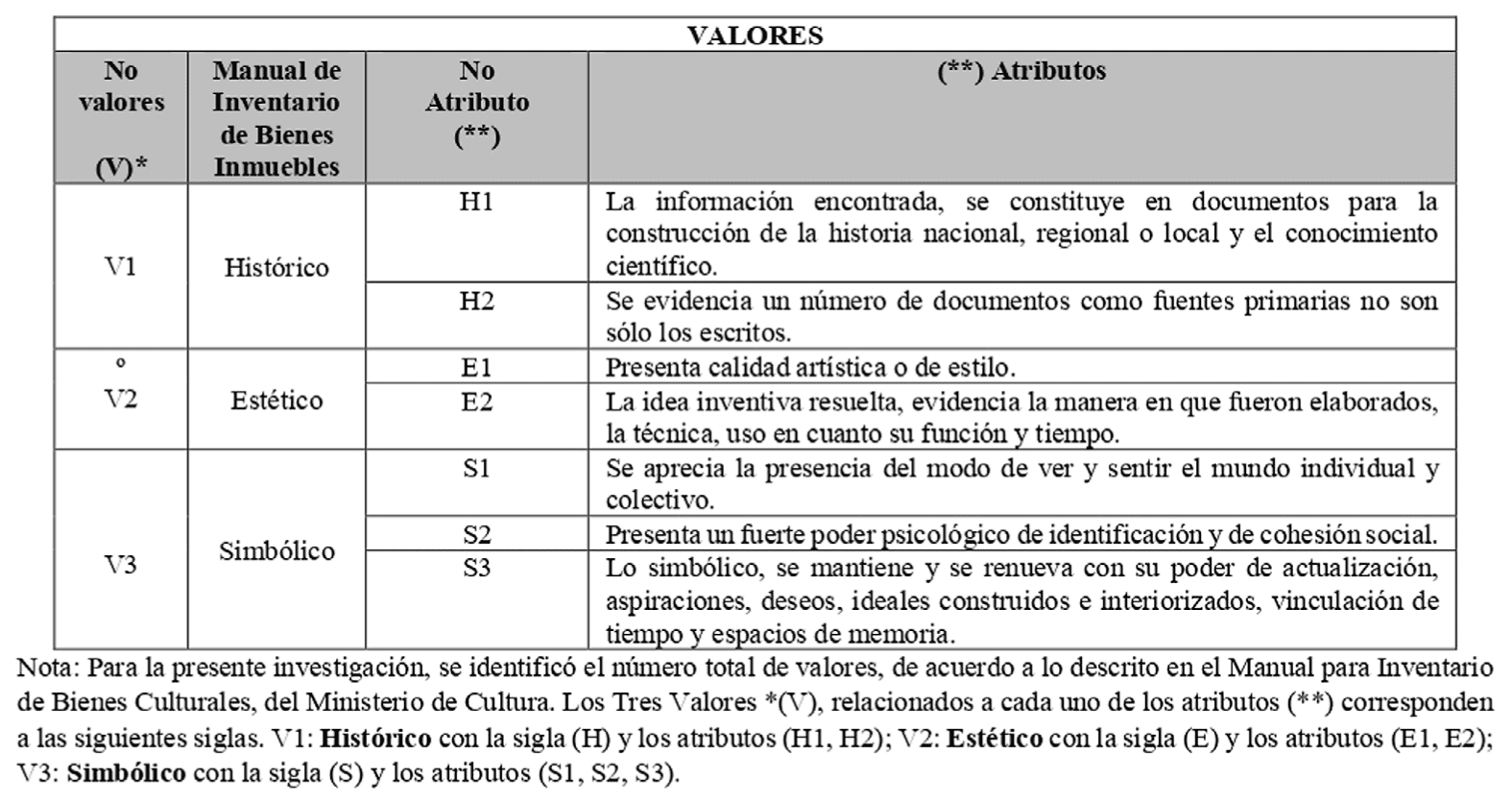 Medición de valores: permiten establecer los atributos del BIC con respecto a los valores histórico, estético y simbólico, a través de la siguiente descripción: