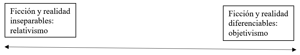 Respecto a lo que ha sido denominado como «obras de no-ficción» —que en algunos casos también se llama, de forma más restrictiva, «periodismo literario» (más restrictiva porque excluye obras históricas, biografías, relatos sobre hechos reales no hechos por periodistas)—, existe una dicotomía en las versiones sobre esta cuestión: en un extremo están quienes sostienen que cualquier relato está inmerso parcialmente —con mayor o menos intensidad— en la ficción, pues solo contamos con versiones sobre los hechos pasadas por el tamiz de la subjetividad, el lenguaje, la forma de interpretar, el sistema de creencias, las convicciones y la imaginación. Es una posición relativista sobre el conocimiento de la realidad social que, en últimas, expresa escepticismo sobre la posibilidad de conocer y no considera necesario un criterio de demarcación entre lo ficticio y lo real.