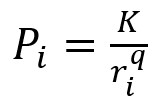 El principio rango-tamaño fue propuesto inicialmente por Auerbach (1913, como se citó en Cuervo, 2004), que explica la población Pi de la ciudad i en función de su rango ri, definido enorden decreciente de tamaño dentro del conjunto nacional o regional de ciudades (ecuación 1).