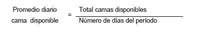 El promedio diario de cama disponible es el número de camas que en promedio estuvieran disponibles diariamente. Se obtiene dividiendo el total de días-camas disponibles durante un período por el número de días del período.
