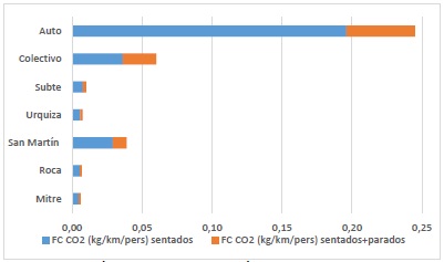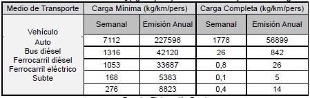 De dicha comparación se observa la gran diferencia existente entre el uso de auto y el colectivo y también la gran diferencia entre la emisión del colectivo y el subte. Obviamente, esto se debe a la diferencia entre los factores de emisión y también el hecho de la capacidad de carga de cada vehículo.