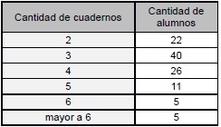 En lo que se refiere a los cuadernos utilizados por los alumnos en un cuatrimestre, se han obtenido los siguientes resultados: