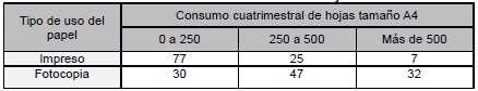 El papel es el principal insumo que utilizan los estudiantes para desarrollar sus actividades académicas, ya sea para tomar notas como en el uso de fotocopias y apuntes. Para calcular su consumo, como ya hemos mencionado, consultamos a los alumnos sobre el uso de cuadernos universitarios, hojas impresas y fotocopiadas. Se dejó fuera del análisis de este estudio la compra de libros impresos.