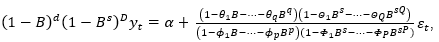are the coefficients of seasonal moving averages, p is the number of autoregressive components, P is the number of seasonal autoregressive components,