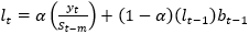 The method uses a set of recursive estimates from the historical series. These estimates use constants; a y β and for updating the level, trend and seasonality respectively in reference to the components of the time series in question (Su et al., 2018).