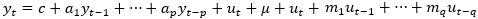 , where p and q are the terms of the autoregressive process and moving averages respectively.