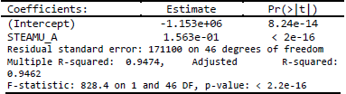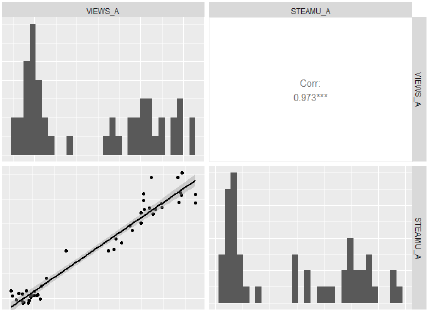 Para comprobarlo se estima un modelo de regresión lineal con VIEWS_A como variable dependiente explicada por STEAMU_A. Los resultados se presentan a continuación: