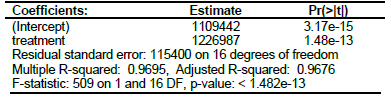 Al realizar un análisis de regresión Diff-in-Diff obtenemos el mismo resultado que la diferencia de medias calculadas anteriormente y con significancia estadística.