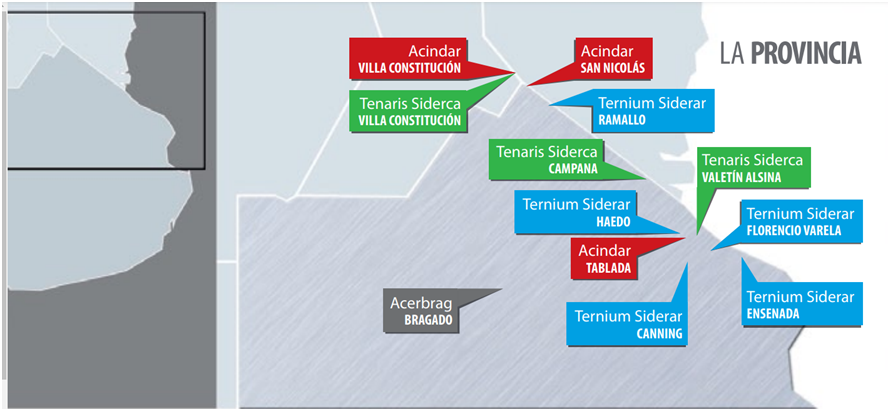 In turn, this economic concentration also conditions and defines a geographical concentration, particularly around the northwest corner of the province of Buenos Aires. Currently, 95% of national production is concentrated in three large companies: Acindar, Siderar and Siderca (Professional Council of Economic Sciences of the Province of Buenos Aires, 2013) located – their main plants – in General Rodríguez, Campana. and San Nicolás, respectively; which leads to an economic framework linked to steel being configured around them (Figure 1). Consequently, metalworking is developed mainly in the Province of Buenos Aires, the Autonomous City of Buenos Aires, Córdoba and Santa Fe, concentrating 90% of the national metalworking universe. These are small and medium-sized companies with between 10 and 20 people on average and large companies that have more than 150 employees (Secretariat of Equity and Employment Promotion- Government of the province of Córdoba, 2017).