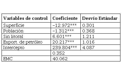 Donde petróleo es una variable dummy que toma valor uno si el país es exportador de petróleo; sin_litoral, también es una variable dummy que toma valor uno si el país no presenta salida al mar; pop, es el logaritmo de la cantidad total de población para cada país; finalmente, la variable superficie es el logaritmo de la superficie en kilómetros cuadrados de cada país. A partir de esta regresión, se consideró el residuo como la nueva medida de apertura comercial. Al controlar por aquellas variables que son exógenas a las decisiones de política económica y afectan el comercio internacional, el residuo que se obtiene de (2) representa una medida “limpia” o “genuina” del grado de apertura de una economía. Esta medida es una más cercana a la apertura producida por medidas de política económica y factores idiosincráticos, ya que controla por factores geográficos y de especialización productiva para el caso del petróleo.