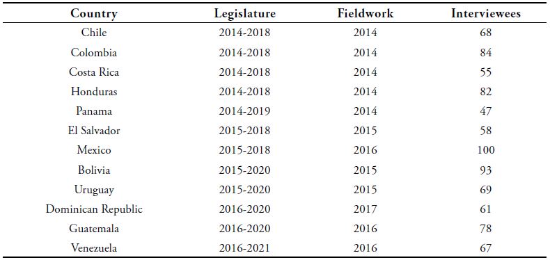 Among the different types of elites, political elites are those with the greatest influence on the strategic decisions that shape the standards of living within a society (Hoffmann-Langue 2007). These elites can be composed of sub-groups (Blondel and Müller-Rommel 2007), such as members of a cabinet, mayors, senators, representatives, etc. Among these subgroups, national legislative elites are the most relevant, as they represent the citizens, have some control over the Executive, and influence the political system (Aberbach et al. 1981); moreover, they can be clearly identified through the positional approach (Coller et al. 2016; Hoffmann-Langue 2007). In democratic regimes, parliaments are the place of representation par excellence (Alcántara and Llamazares 1997), and the elected representatives are those who make fundamental decisions (García et al. 2013, 136).