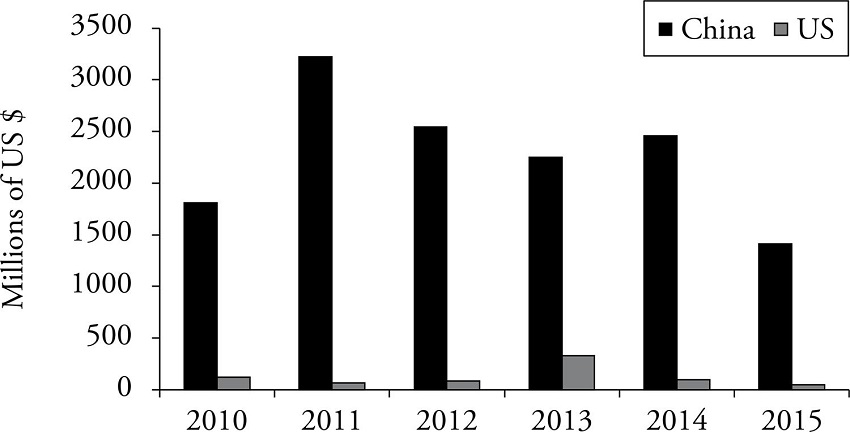 The US Congress Research Services’ periodical reports ( Nelson and Weiss 2014 ; Nelson 2015 ) do not hide the relevance of “U.S. Commercial Interests in MDBs […]: billions of dollars of contracts are awarded to private firms each year” ( Nelson 2013 ). Moreover, in a context in which companies from China, Brazil, and India have become the main suppliers of procurement at the WB, “strategic efforts” are demanded to increase the share of contracts won by US firms ( Weiss 2012 ) ( Figure 1 ).